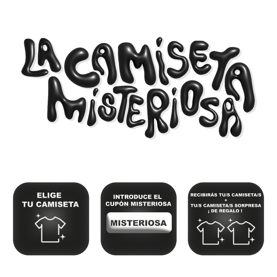 Por cada camiseta que compres recibes otra camiseta sorpresa de REGALO (en la misma talla y de modelo distinto al comprado).